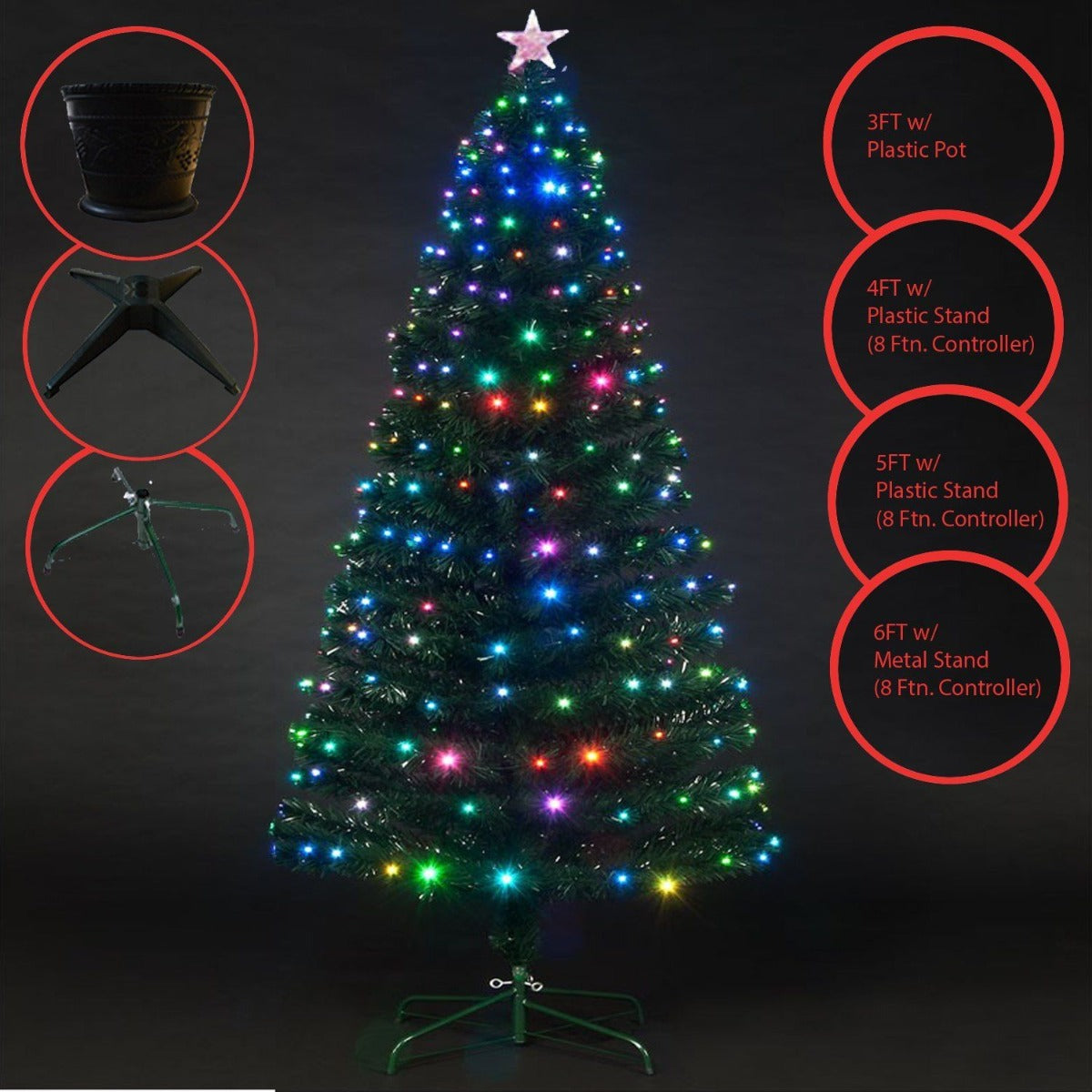 The celebration of Christmas with these Trees manifolds the festivity and show. Quick and easy to assemble, the fixed branches create a lovely full tree to Showcase your decoration collections. On a Plastic Pot, Plastic Stand, sturdy metal base, the ever green fir tree has traditional green foliage and makes a great addition to any home or office environment. Decorations Are not included apart From Star on top of Tree and Led's .This beautiful tree is part of our Premium range as such it is made from the Good quality materials to give a full and lush look to the tree for your house.