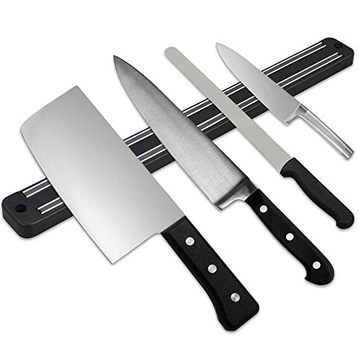 Wall Mounted Long magnetic knife bar features a powerful magnet to hold your knives. It Holds knives tools safely on the wall, in or under a cabinet.
