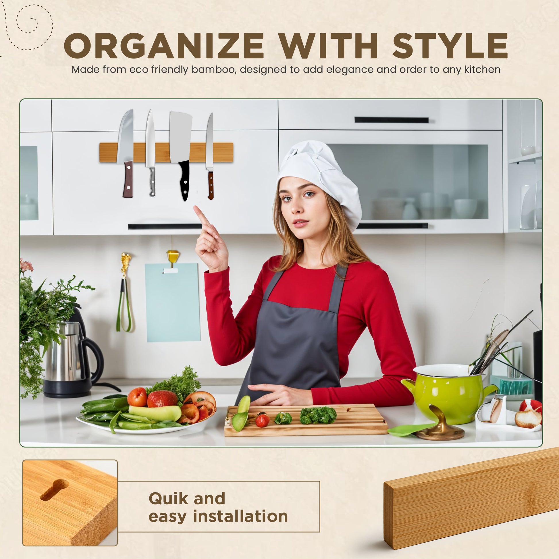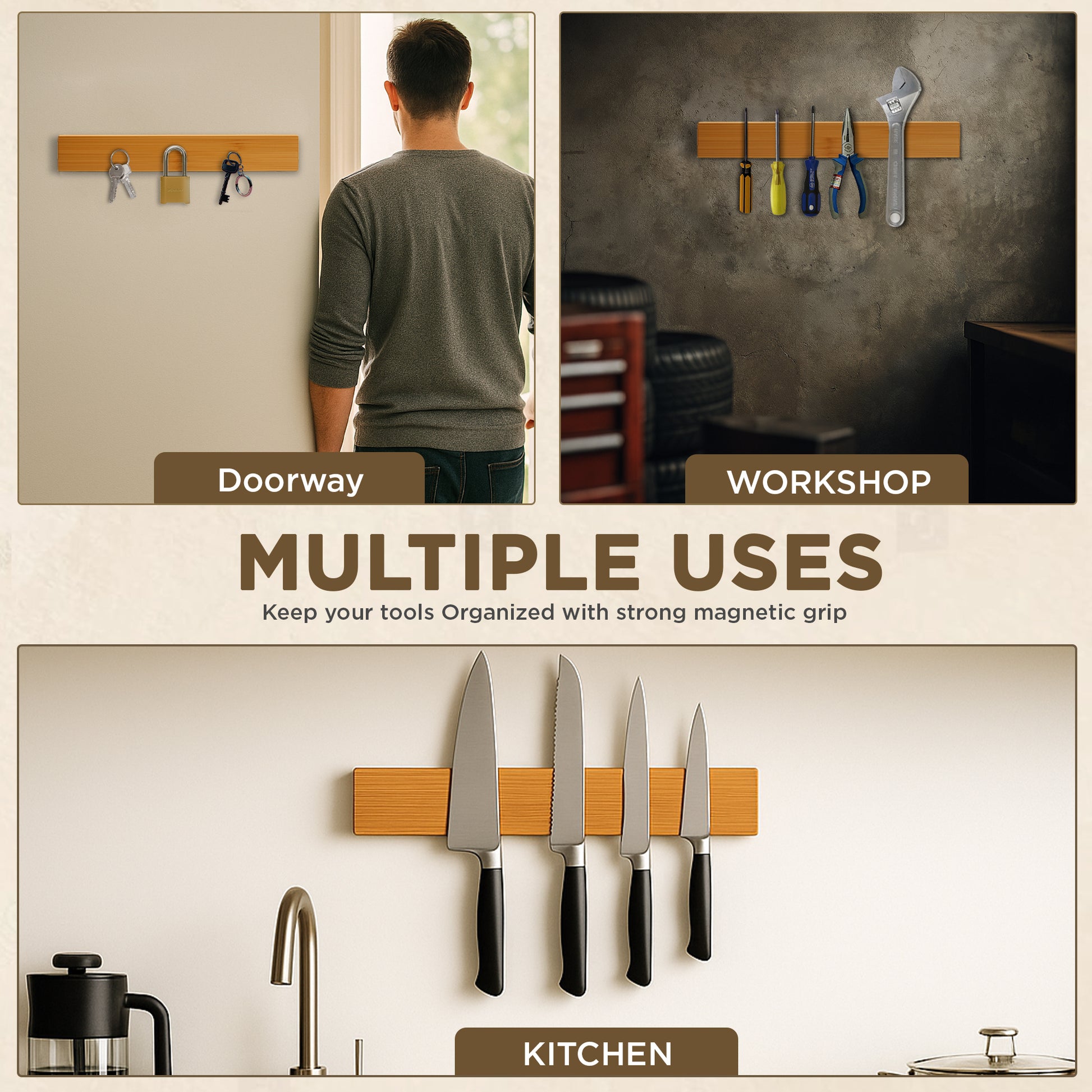 Featuring two rows of powerful neodymium magnets, this magnetic knife strip ensures a strong, secure grip on your kitchen knives, keeping them safely in place and easily accessible.