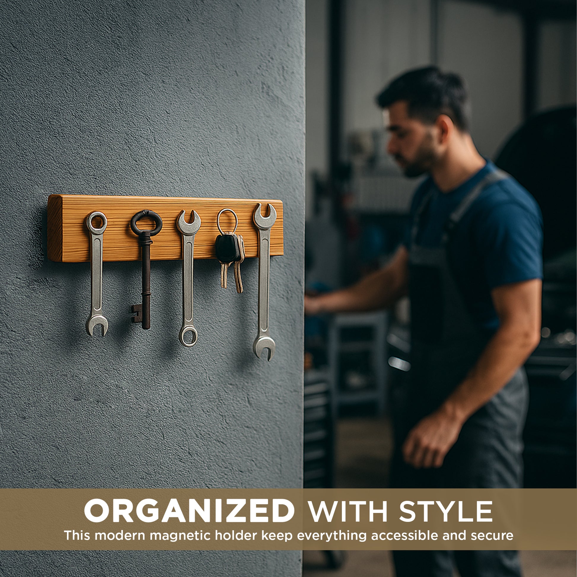 Crafted from high-quality walnut wood, this magnetic knife holder adds a touch of natural sophistication to any kitchen wall. The smooth finish and rich wood grain complement both modern and rustic kitchen décor.