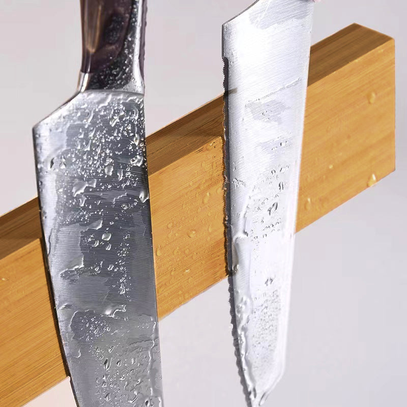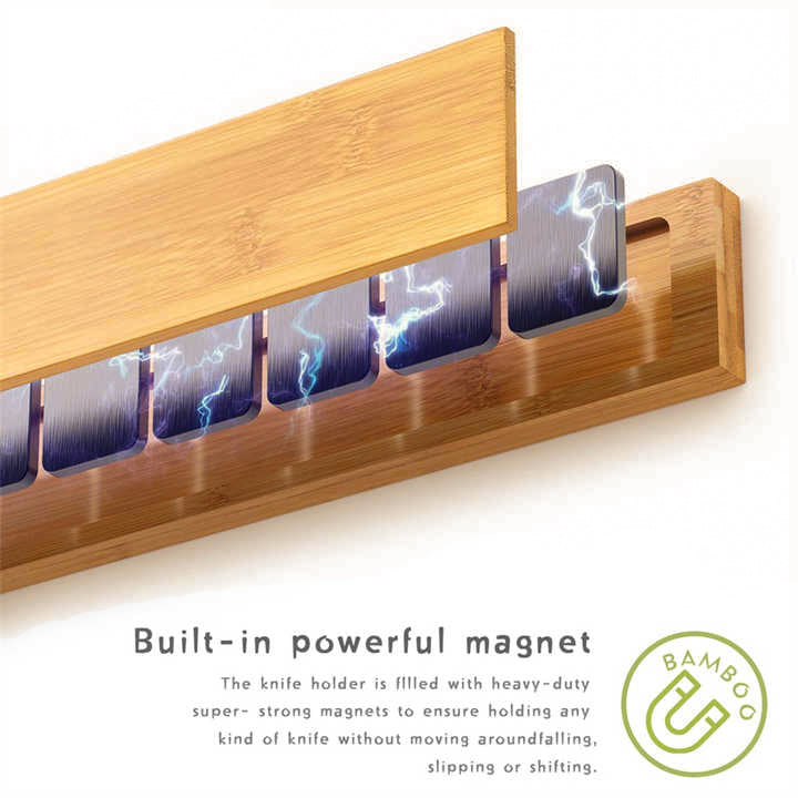 Featuring two rows of powerful neodymium magnets, this magnetic knife strip ensures a strong, secure grip on your kitchen knives, keeping them safely in place and easily accessible.