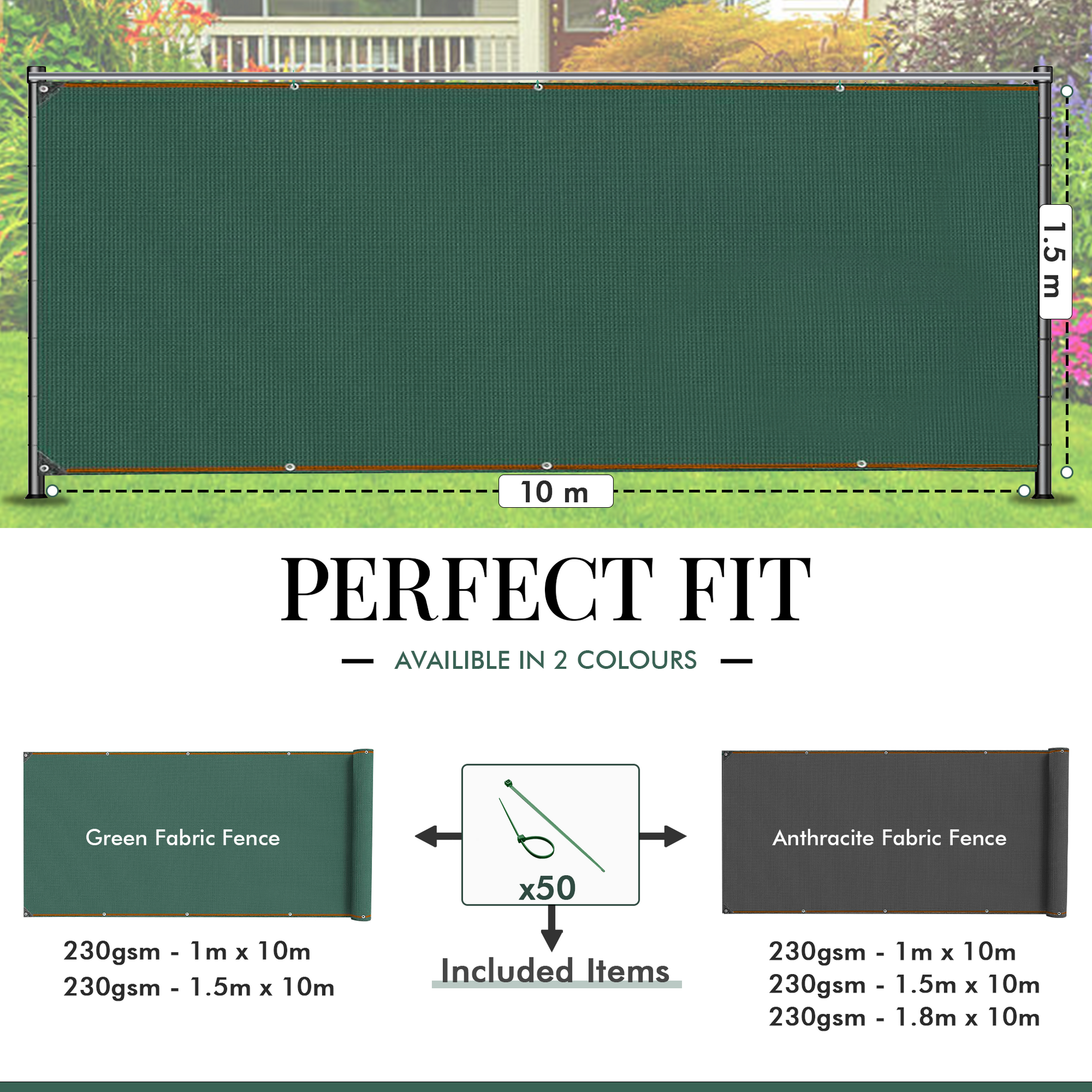 Green Fabric Fence 230gsm - 1.5m x 10m
